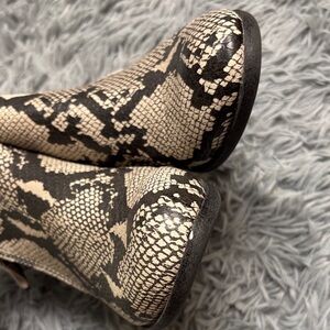 Stylish snakeskin pattern. Side zipper for easy wear. Perfect for a bold look. EUC as the photos show they have no major flaws with the stickers still attached with only very minor signs of wear present such as the bottoms being a bit dirty. These were only worn once for maybe a few hours to an event so they’re in excellent condition I just don’t wear them! These are very comfortable since they’re memory foam!