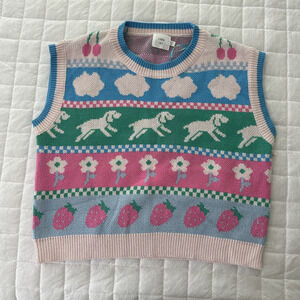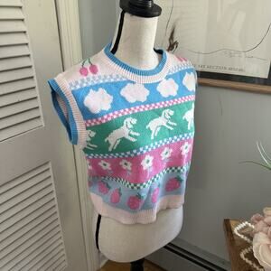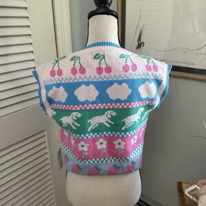 LUNA IVY Sweater Vest Womens XS Pastel Babycore Puppies Clouds Berries Flowers