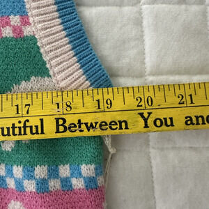 LUNA IVY Womens Sweater Vest XS Pastel Multi Pattern Retro Cottage Preppy Puppy