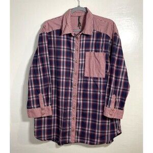 By Anthropologie Flannel Boyfriend Women's Button down Shirt Medium 100% Cotton