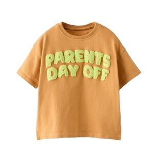 Fun and vibrant kids' t-shirt featuring 'Parents Day Off' in playful green text. Perfect for casual outings and playtime.