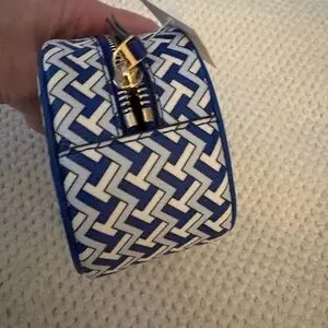 NWT t-zag cosmetic pouch in jewel blue and white. Retail $99.00. No callouts. Great gift!