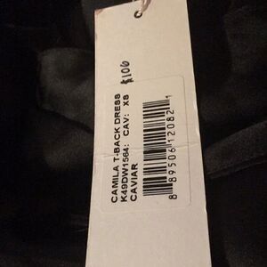 NWT Bishop + Young XS black silky tea length dress. Criss cross straps. Zipper on side. Camila T back dress