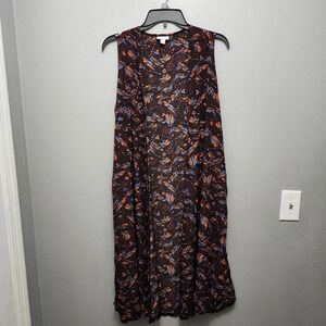 LulaRoe women's open front sleeveless long cardigan size S multi color brown