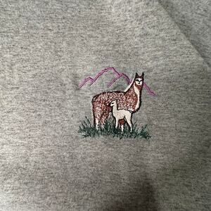 Vintage 90s Single Sports Green Grey Llama in Mountains Embroidered Tshirt L
