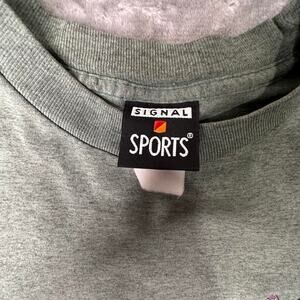 Vintage 90’s Single Sports Green Grey Llama in Mountains Embroidered Patch Single Stitch T-shirt Size Large