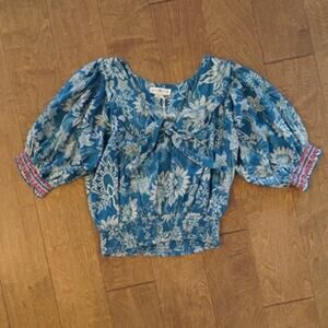 NEW Natural Life Short Sleeve Floral Cropped Top Blue Womens Size Medium