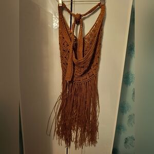 Whipers Women's Crochet Top Bra Cover Up, Color Brown XL