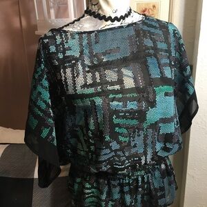 Miss Tina elastic ruffle waist with oversized sleeve blouse