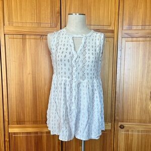 This En Crème sleeveless baby doll-style top in size medium is a beautiful blend of boho and cottagecore aesthetics.