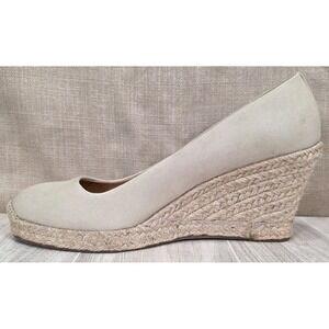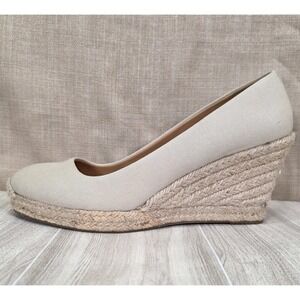 J Crew Beige Cream Canvas Woven Wicker Seville Espadrilles Wedge Heel Size 10.5