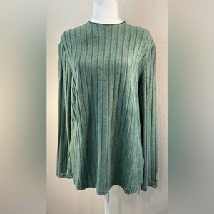 Classic Fashion Fitted, Ribbed Long Sleeve Sweater - Green