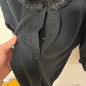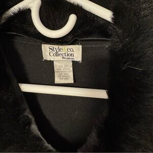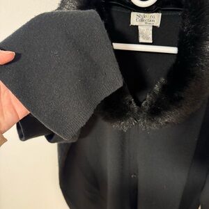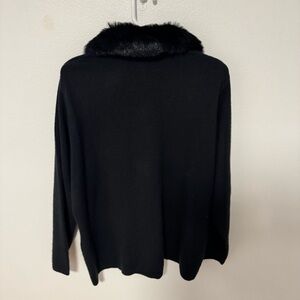 Elegant black cardigan by Style & Co. Features a luxurious faux fur (removable with buttons) collar. Perfect for layering and holiday parties! Fabulous, used condition with no stains or holes.