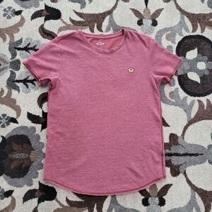 Hollister Shirt Women Sz S Donut Logo Long Line Raw Edge Top Red Marl Cotton t-shirt. Condition is excellent. No stain no holes no fading. Please see all pictures for details. "Pre-owned". Shipped with USPS First Class.