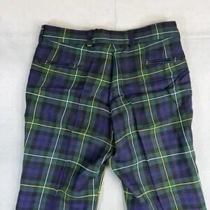 Vintage The Scotch House Pants Mens 35x28* Blue Green Tartan Plaid Wool Scottish