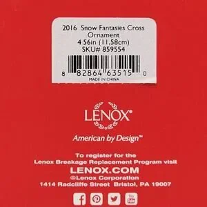 Lenox 2016 Snow Fantasies Cross Christmas Ornament w Box 859554 Excellent Cond