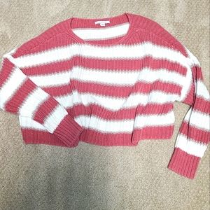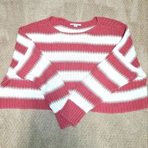 American Eagle Cropped Striped Knit Sweater Pink, White & Tan Large