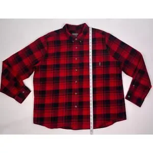 Eddie Bauer Red Black Plaid Flannel Button Up Shirt Men’s 2XL