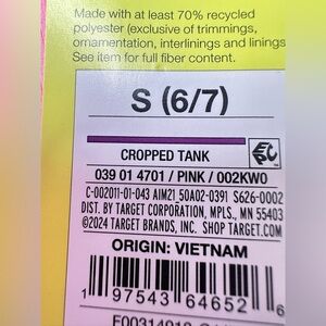 All In Motion Cropped Tank Tight Fit Kids Girls Size Small (6/7T) Build In Bra