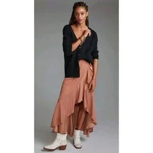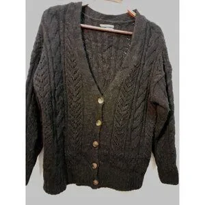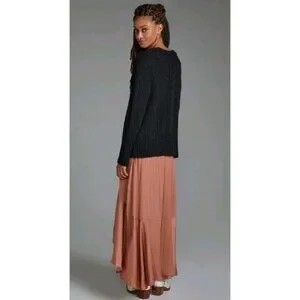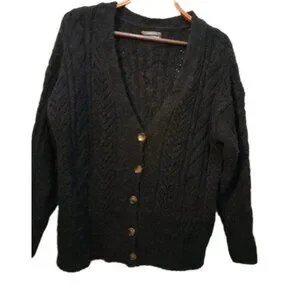 Anthropologie Pointelle Cardigan Sz Small Boho Oversized Cable-Knit Slouchy Blk