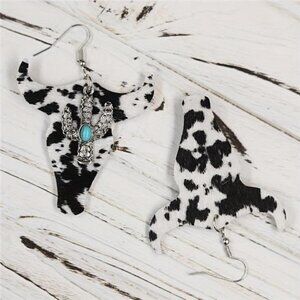 Material: alloy metal:; cow faux fur texture, howlite stone