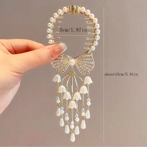Enhance your look with this elegant pearl and gold hair accessory. Perfect for special occasions, it adds a touch of sophistication to any hairstyle.