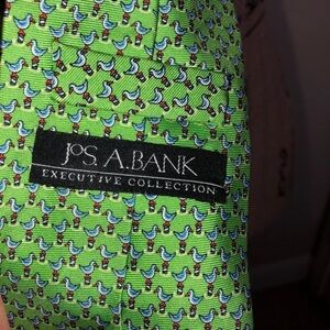 Jos. A. Bank Green Executive Tie with Blue Little Seagulls on it.