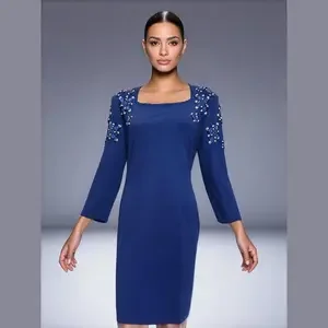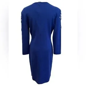 90s OUTLANDER ROYAL BLUE KNIT BODYCON MIDI DRESS & BLUE GEM & PEARL ACCENTS SZ M