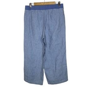 J Jill Love Linen Womens Cropped Wide Leg Pants Sz Medium Striped Pockets Blue.