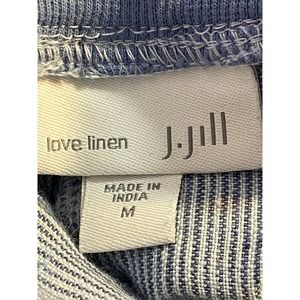 J Jill Love Linen Womens Cropped Wide Leg Pants Sz Medium Striped Pockets Blue