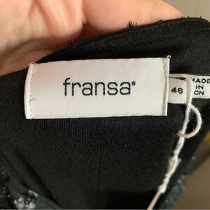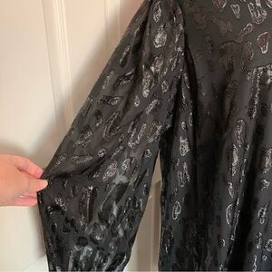 NWT fransa Long Sleeved Black V-Neck Subtle Animal Print Cocktail Dress, Bubble Sleeve, 2X