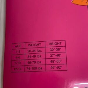 Fits age 12-14 / 74-100 lbs / 56”-62”