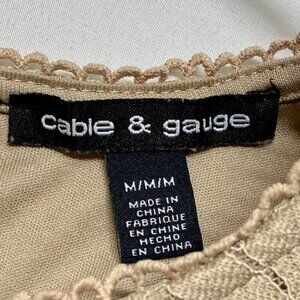 Cable & Gauge Lace Blouse Women's Medium Tan Sheer Ruffled Sleeves Front Boho