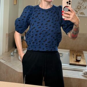 Clare V marine jag puff sleeve tee size small EUC