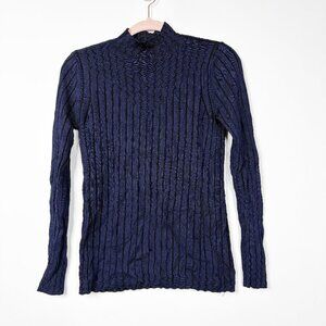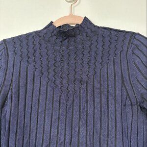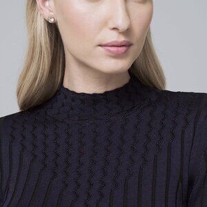 2/$30 White House Black Market Mock Neck Yoked Sweater Indigo Medium #9884