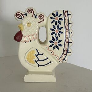 Vintage Hand Painted Napkin Holder Rooster Chicken Letter Farmhouse Cottage