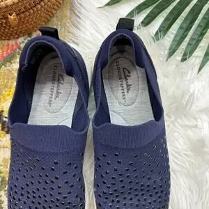 Clarks Navy Blue Lightweight Slip On Casual Knit Sneaker 9