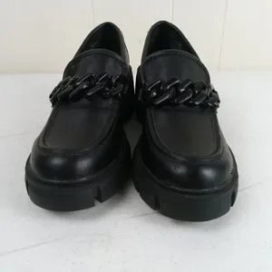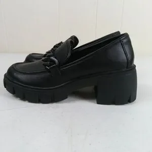 Madden Girl Black Chunky Slip On Loafers Size 6.5 Lug Soles Faux Leather