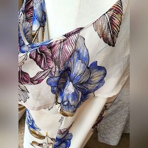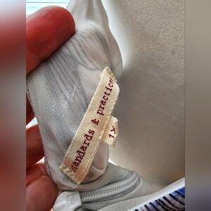 beautiful light and flowy summer dress by Standard and Practices- Brand Sold at Bloomingdale's. would be so nice for a summer wedding and to dance in! it is a very soft grey- machine washable! neck tie and be warn in a bow or tied around neck- zip closure and adjustable straps. the hem is slightly higher in front and a bit longer at the sides so it has really nice movement and lines- shows off your shoes or sandals! in very good condition- on very small pull in the fabric under the ar- shown in picture- barely noticeable