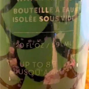 Chic bottle with iridescent scale design. Keeps beverages hot or cold.