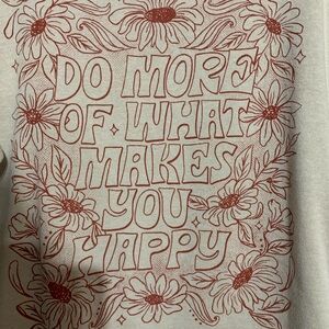 Cozy cream sweatshirt with pink floral graphic “Do More of What Makes You Happy”. Ideal for casual wear.