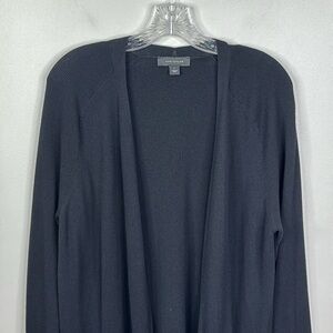 Ann Taylor Black Ribbed Open Front Cardigan Sweater Duster Women's Size Large