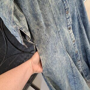 Step out in vintage style with this acid stone washed denim maxi dress from the 1980s. Perfect for casual occasions, this original piece features a button-up front and long sleeves, giving it a classic western look. Yoked front and back. Made from high-quality denim material, this dress is a must-have for any fashion-savvy woman. See pictures for lay flat measurements as vintage fits smaller.