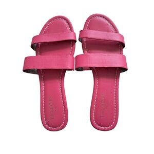 Talbots Shoes Sandals Women's 8 Bubble Gum Pink Flat Two Straps Slip On Summer