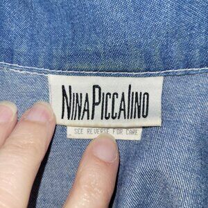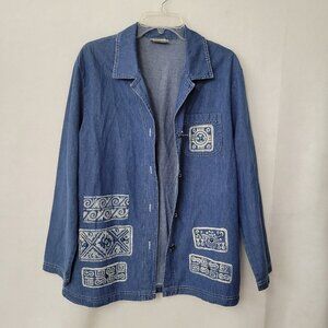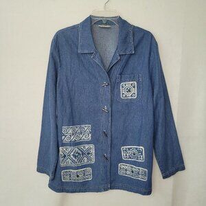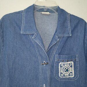 Nina Piccalino Shirt Womens 8 Blue Denim Beaded Toggle Jacket Shacket Vintage