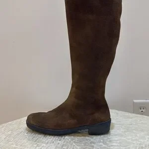 Clark’s tall suede boots Sherpa lined zipper Brown size 5.5