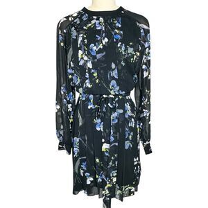 Reiss Navy Blue Nettie Floral Belted Mini Dress| Size 12