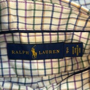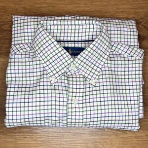 Ralph Lauren Men’s Small Ivory Checkered Long Sleeve Cotton Button Down Shirt
