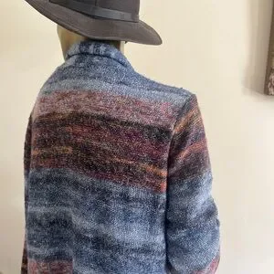 Well made J. Jill cardigan /robe with shades of blue, mauve and orange hues. Perfect for Fall and layering. Length 42”