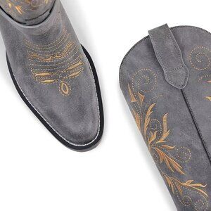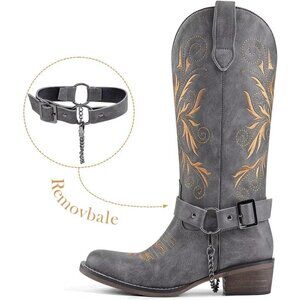 Women's Embroidered Gray Removable Belt Low Block Heel Round Western Boots